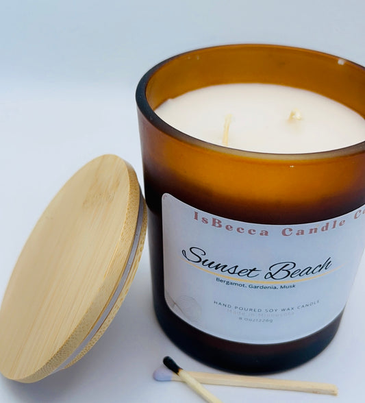 Sunset Beach Candle| Soy and Coconut Wax blend| Relaxing Beach Scented Candle with Peach, Plum & Jasmine | Eco Friendly